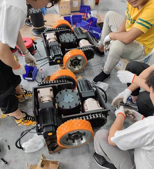 所以稱之為舵輪,是因為它集成了驅(qū)動電機、轉(zhuǎn)向電機、減速機等一體化的機械結(jié)構(gòu),集產(chǎn)品、行走、牽引和轉(zhuǎn)向功能為一體,可以荷載和牽引較重貨物。可快速部署AGV、移動式機器人等。完美滿足AGV的應用需求。因此,舵輪驅(qū)動是AGV應用的發(fā)展方向。相比傳統(tǒng)AGV小車差速控制方式,舵輪集成化高,適配性強,配合伺服行星減速機傳動使用精度更高,響應更快。