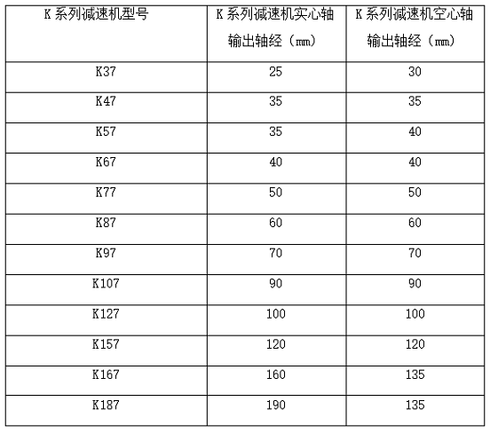 K系列硬齒面減速機(jī)的輸出軸徑有哪些?