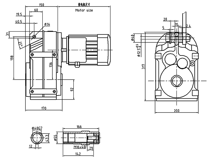 作為常用的減速機之一,廠家型號多樣化,可根據(jù)設(shè)備的實際使用功率以及速度來匹配想對應(yīng)的型號,例如F57平行軸減速機為其中的一個型號,功率范圍為:0.18KW~7.5KW,速比范圍為4~197比,許用扭矩為420NM。以下為F57平行軸減速機的尺寸圖紙,在使用過程中可以查看。