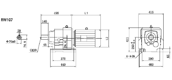R系列臥式齒輪減速機(jī)中RW107和RW137減速機(jī)的安裝尺寸圖如下:R107臥式齒輪減速機(jī)安裝尺寸圖R137臥式齒輪減速機(jī)安裝尺寸圖