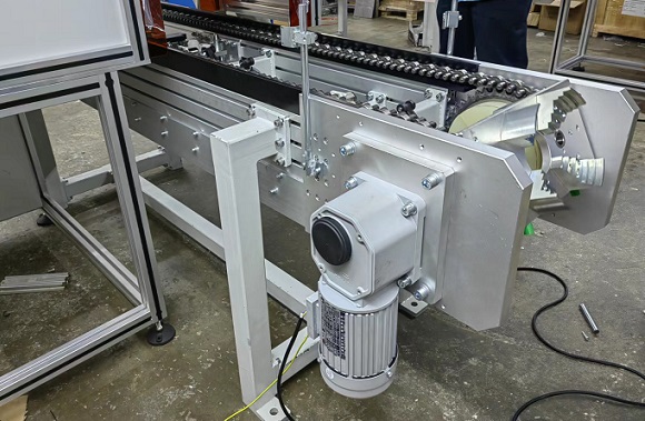 士元小型直角減速電機(jī)作為現(xiàn)在市面上用的比較多的一款小型減速電機(jī),深受大家的喜愛(ài)。型號(hào)多樣化,功率100KW~3700W,速比從5到240比,可實(shí)心軸輸出,可空心軸輸出,均可按照設(shè)備的實(shí)際情況來(lái)選擇。昆山輸送設(shè)備廠的丁總就是看中了這款減速機(jī)小巧好安裝,并且質(zhì)量也蠻好。選型的是SGF30-400-25-S-MC型號(hào)。輸出軸徑為30mm,功率為400W,速比為25比。生產(chǎn)好,目前已經(jīng)在設(shè)備上運(yùn)行使用。如下圖所示: