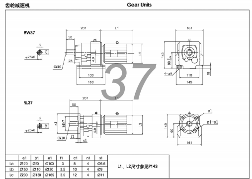 R37減速機(jī)為平行軸輸出,為斜齒輪硬齒面,耐沖擊力大。電機(jī)功率范圍為0.12KW~3KW,速比范圍為5~142.5,許用扭矩為200N.m,輸入方式可以配置直聯(lián)電機(jī);可以配電機(jī)連接法蘭,用戶自配電機(jī);可配軸輸入